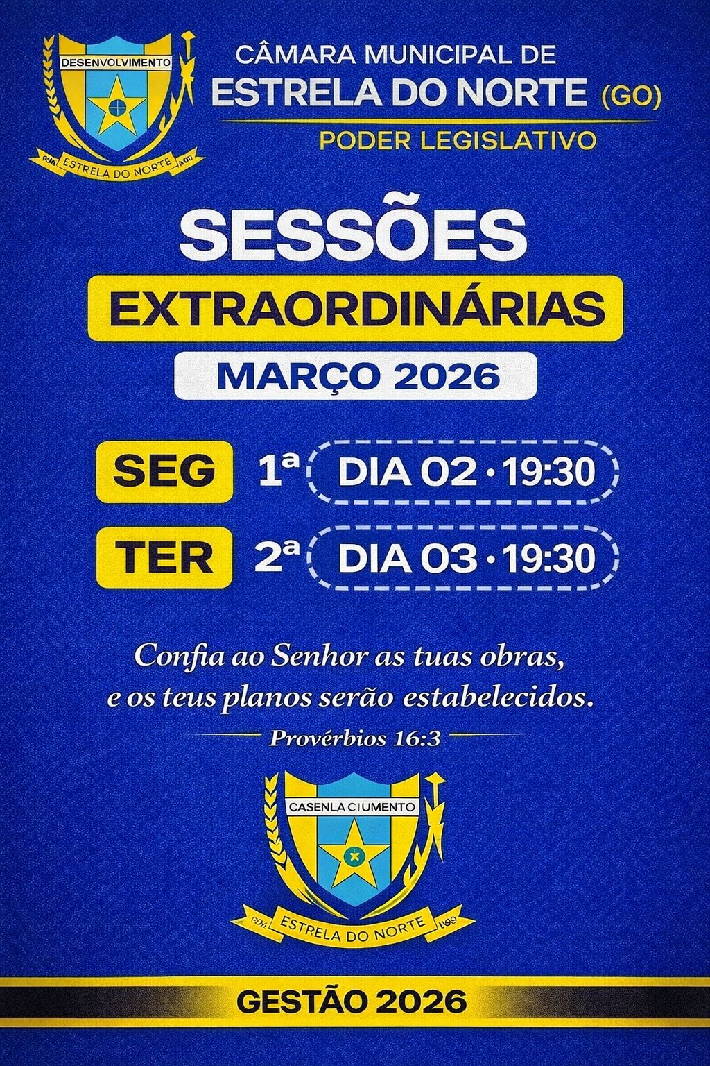 Sessões Extraordinárias de Março – 2026